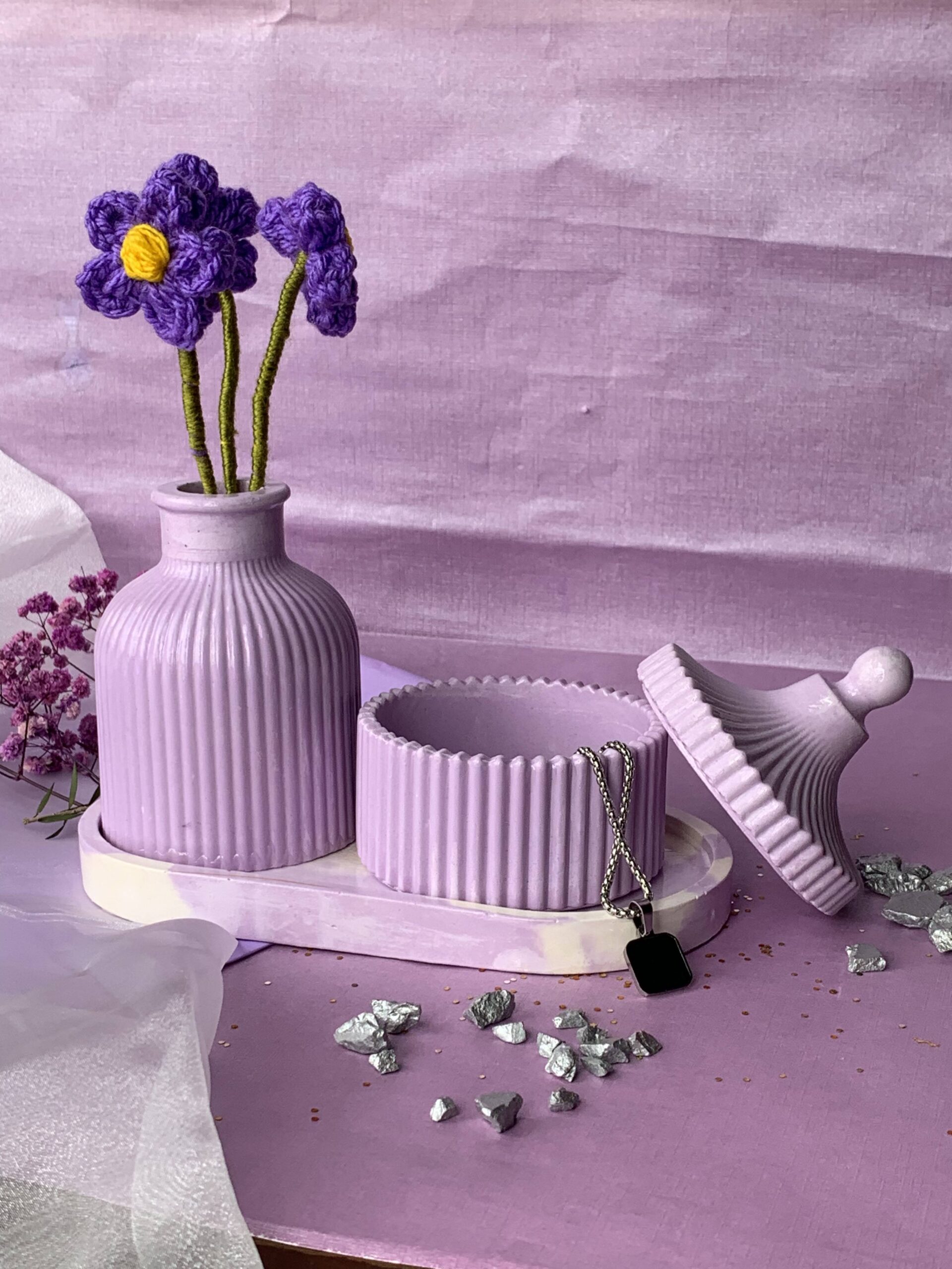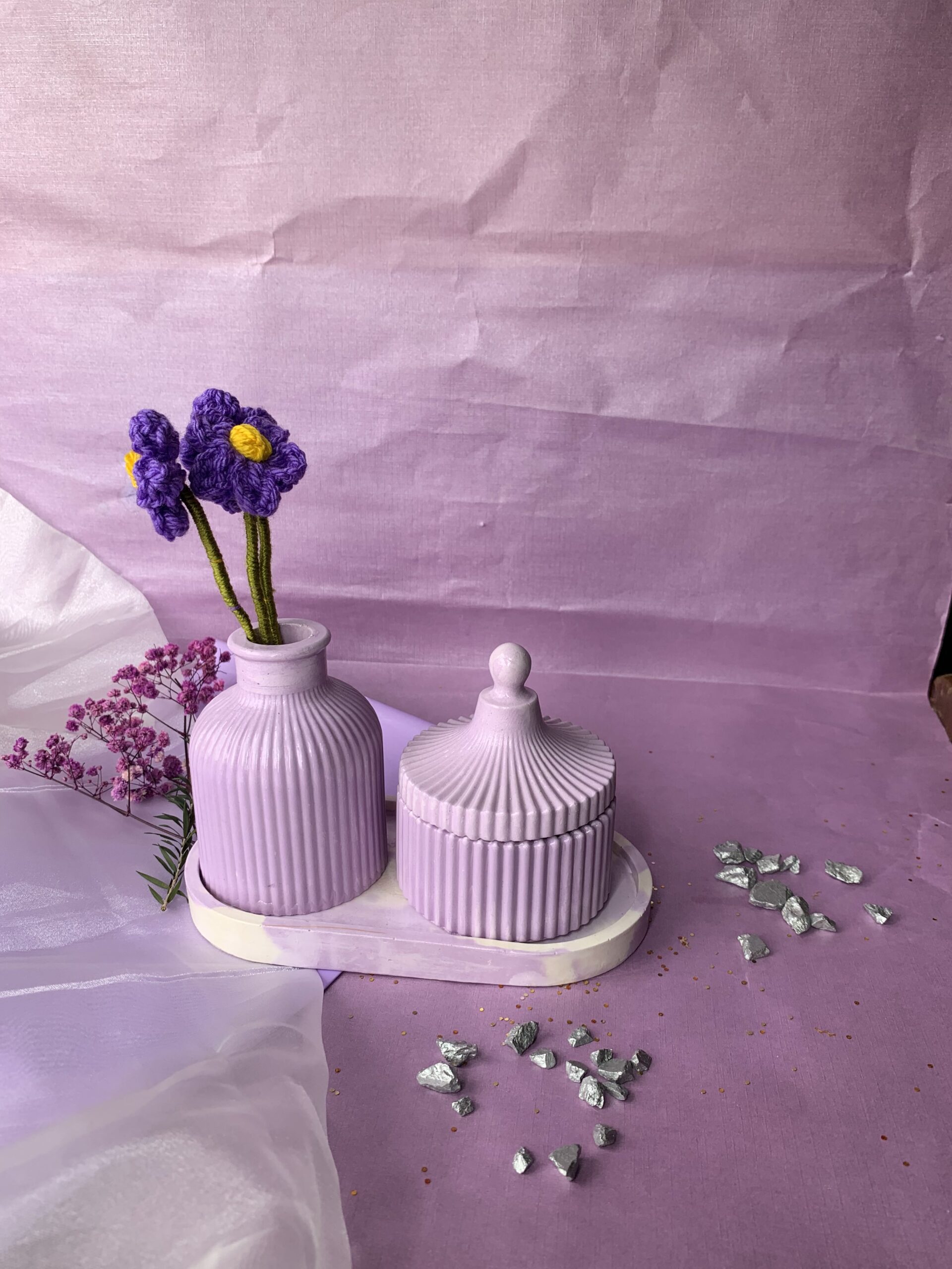 Bring a sense of calm and artisanal charm to your space with our Handcrafted Ribbed Vanity Set. This beautifully coordinated collection combines functional storage with a soft, modern aesthetic, making it an essential addition to any bedside table or dressing area.