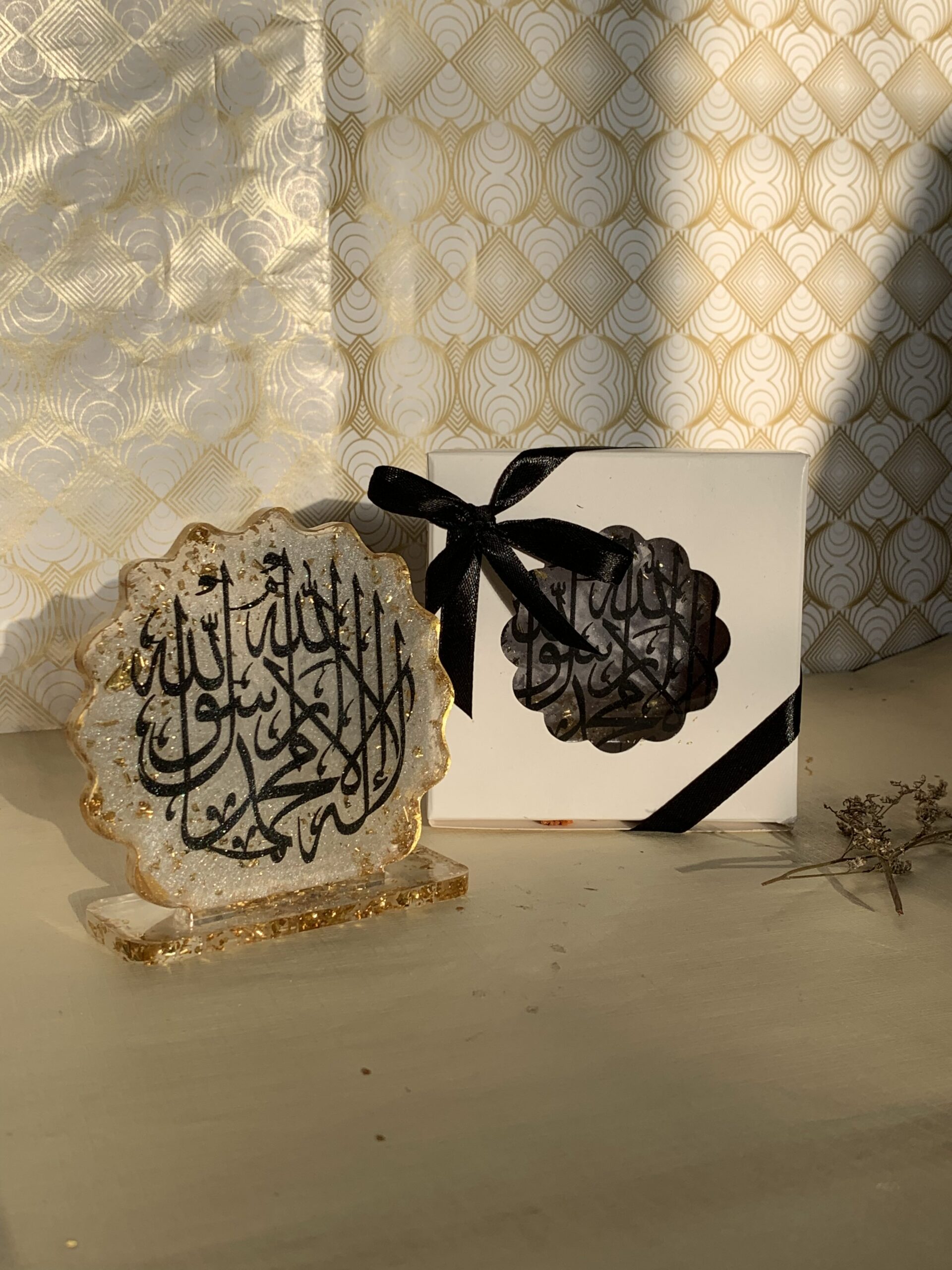Add a touch of spiritual elegance to your home with these Handcrafted Islamic Calligraphy Desktop Displays. These stunning pieces combine traditional artistry with a modern, crystalline aesthetic, making them a perfect focal point for any desk, shelf, or mantle